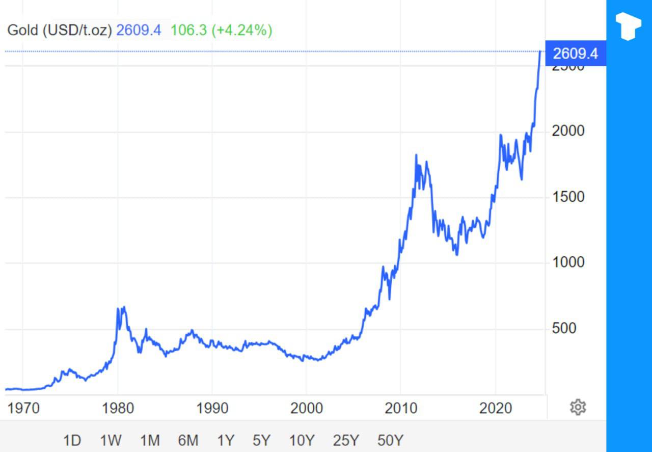 黄金价格创下历史新高,突破每盎司 2,609美元。