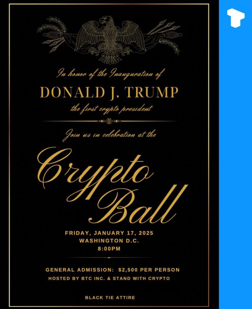 唐纳德·特朗普的就职典礼将于 1 月 17 日在华盛顿特区举行【加密舞会】