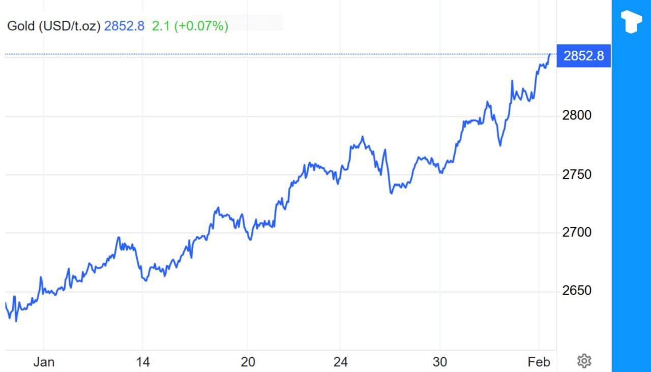 黄金创下 2,853 美元的历史新高,而比特币则难以重新突破 100,000 美元大关。