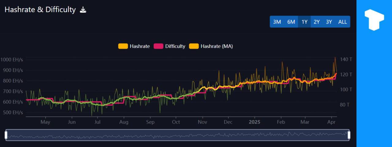 Bitcoin mining difficulty reached a new all-time high of 121.51T.