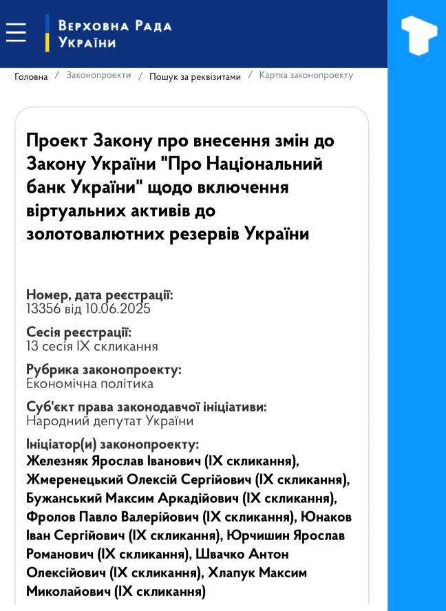 乌克兰已登记一项法律草案,提议建立国家加密储备。