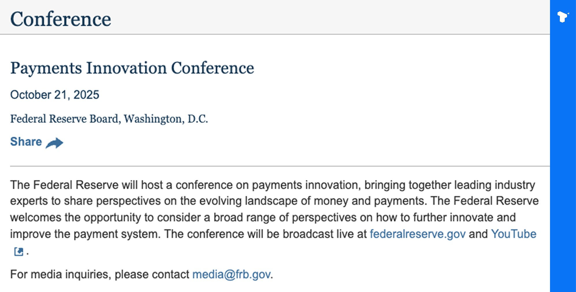 10月21日,美国联邦储备委员会将举行一场关于支付创新的会议,为与行业专家进行讨论提供一个平台。